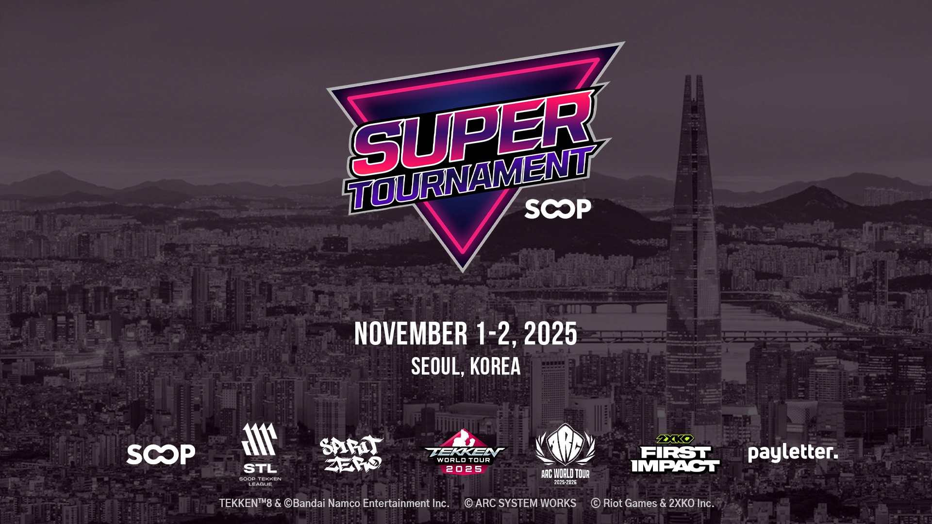 한국 최대의 종합격투게임대회 'SOOP Super Tournament 2025'가 열립니다.