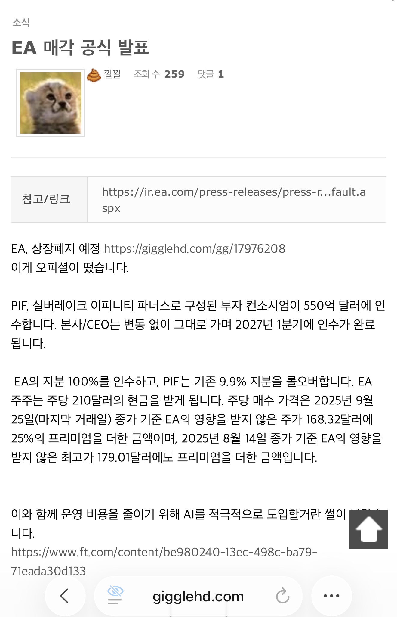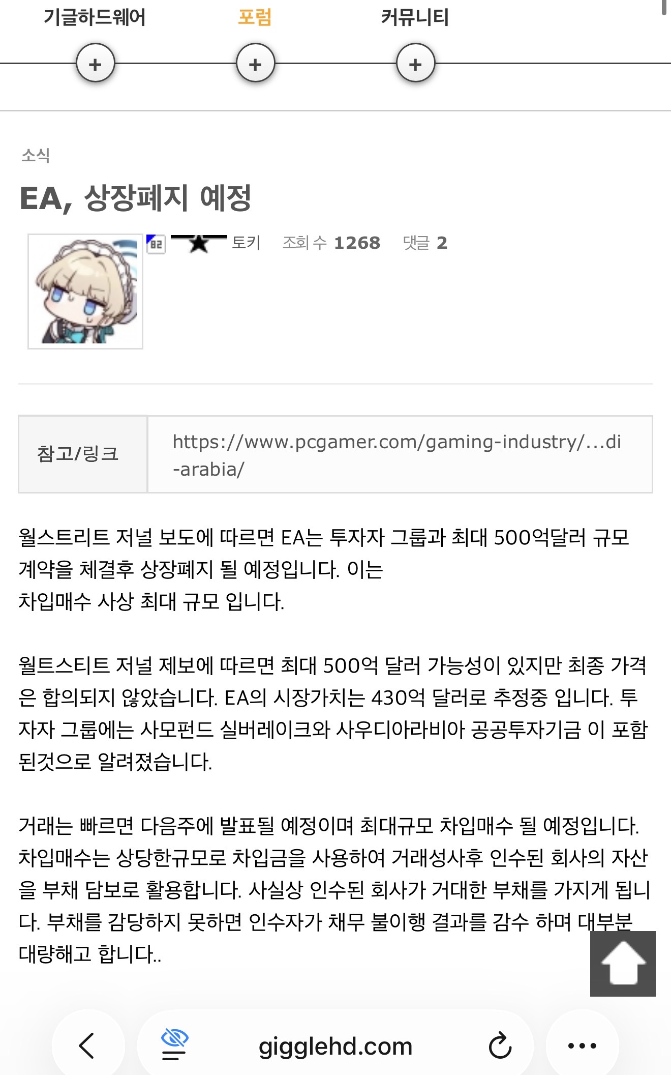 550억달러면 액블의 인수금액 687억에 크게 뒤지지않는 액수네요