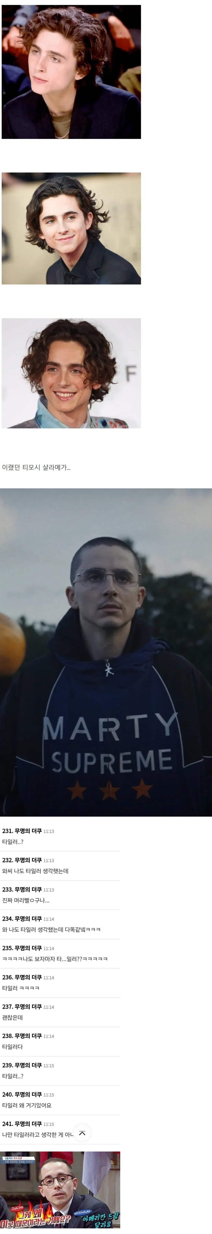 타일러에게 티모시 스타일 가발을 씌워봐야 교차검증이 될듯요