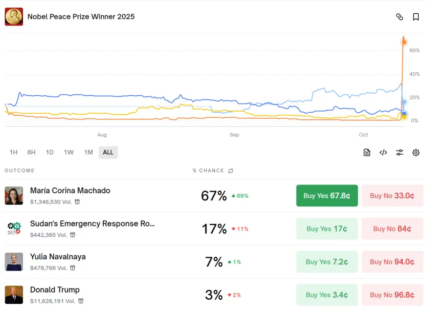 미 최대 정치 도박사이트에서 오늘 갑자기 베네수엘라 야당 여성 정치인이 떠오르더니 실제로 수상하게됐습니다.