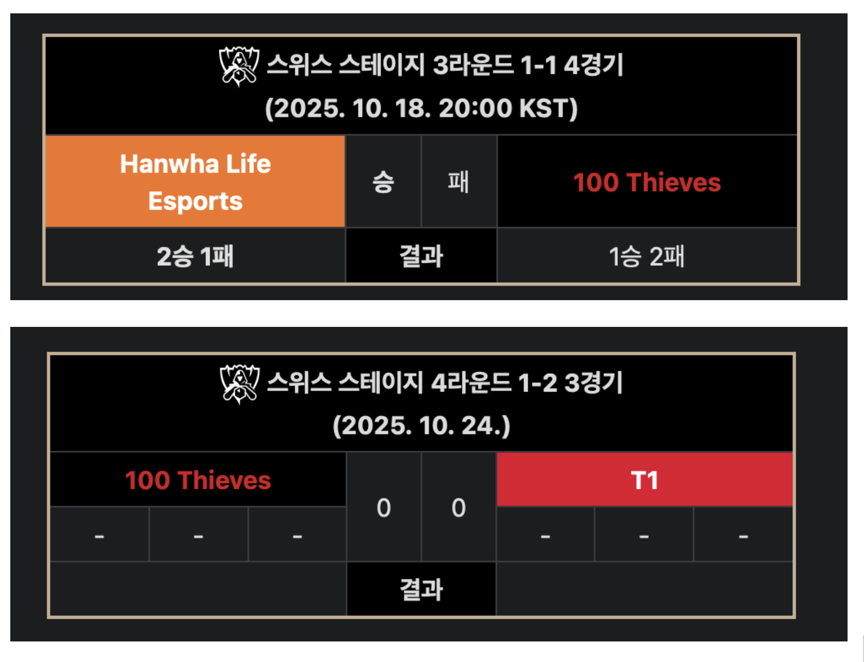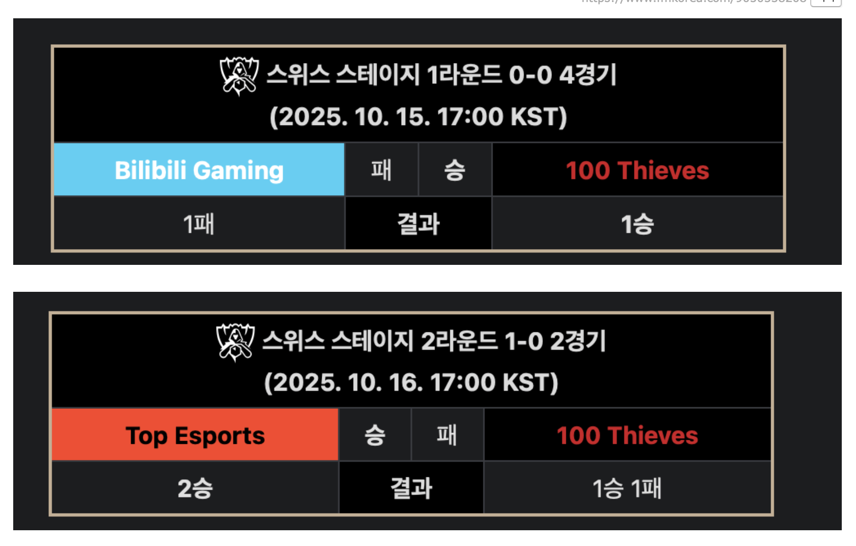 Subject [LOL] 25 월즈 스위스 스테이지 대진운 상
