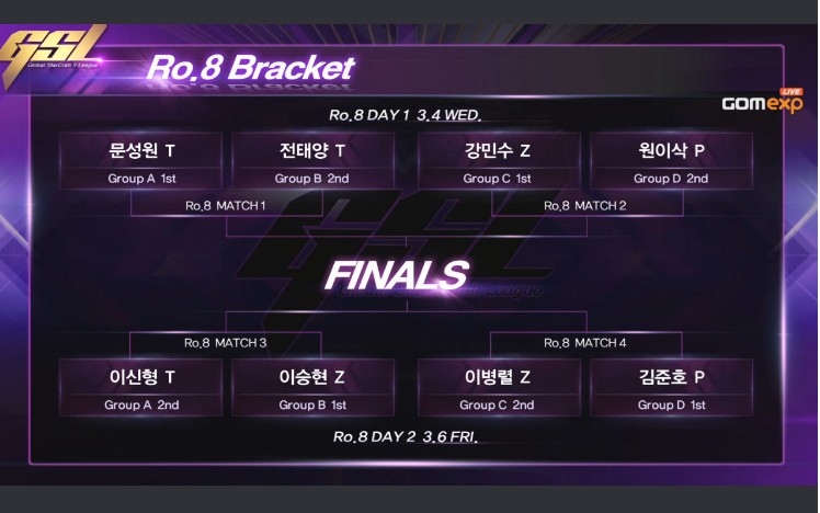 B조 저그강민수(16강 C조 1위) 2 VS 3 플토원이삭(16강 D조 2위)