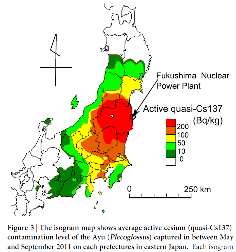 8. (논문 초록 발췌) The extent of active cesium (quasi-Cs137) contamination of Ayu is observed in the entire eastern Japan.