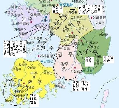 이걸로 끝 (...) 이걸로 웅진(부여) 이북 30여개성이 우르르 왕건에게 항복합니다. 경상도에 이어 충청도까지 이렇게 됐으니 후삼국의 미래는 결정난 것이나 다름없었죠.