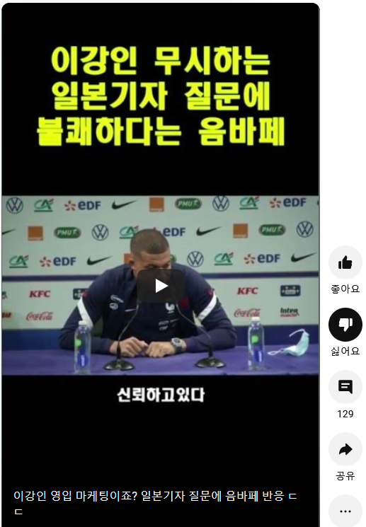 아 이정도라는게 위의 영상같이 실제 음바페가 말한 내용과 상관없이 자막만 멋대로 달아놓은건 AI 없이도 가능하지 않냐는 말씀이군요